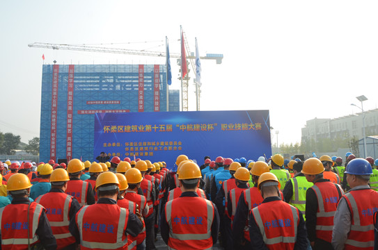 10月18日,由怀柔区住建委、建筑行业工会联合会共同主办,华体会手机网页版登录入口协办的怀柔区建筑业第十五届“中航建设杯”职业技能大赛,在我集团公司承建的一零一中学怀柔校区扩建项目部拉开帷幕。怀柔区住建委工程质量监督站站长单焜,区建筑业协会会长王贵军,区总工会生产生活部部长李文兴,区人力资源和社会保障局职工培训劳动鉴定中心主任刘利民,集团公司总工程师陈劲,工会主席郑春梅一同出席本次活动。
