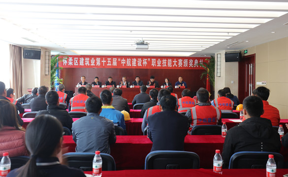 10月25日上午,怀柔区建筑业第十五届“中航建设杯”职业技能大赛颁奖典礼在华体会手机网页版登录入口总部三层多功能厅举行。怀柔区建筑业协会会长、大赛组委会副主任王贵军,区总工会副主席解忠明,集团公司总工程师、大赛组委会副主任陈劲一同参加,同时到场的还有各参赛单位代表及获奖选手共计50余人。
