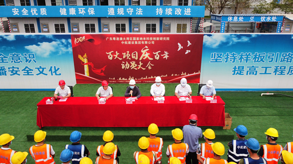 2021年3月29日上午,“百大项目庆百年”动员大会在集团公司承建的广州纳米生物安全中心总部园区一期项目现场隆重举行。建设单位广州纳米产业投资有限公司总经理李佩弦,广州珠江工程建设监理有限公司副总经理李晓光、分公司副总经理赵杰,广东省建筑设计研究院有限公司院副总工程师郭勇,华体会手机网页版登录入口南方工程有限公司总经理、项目总指挥徐刚,项目书记招国樑以及各专业分包单位相关人员参加活动。